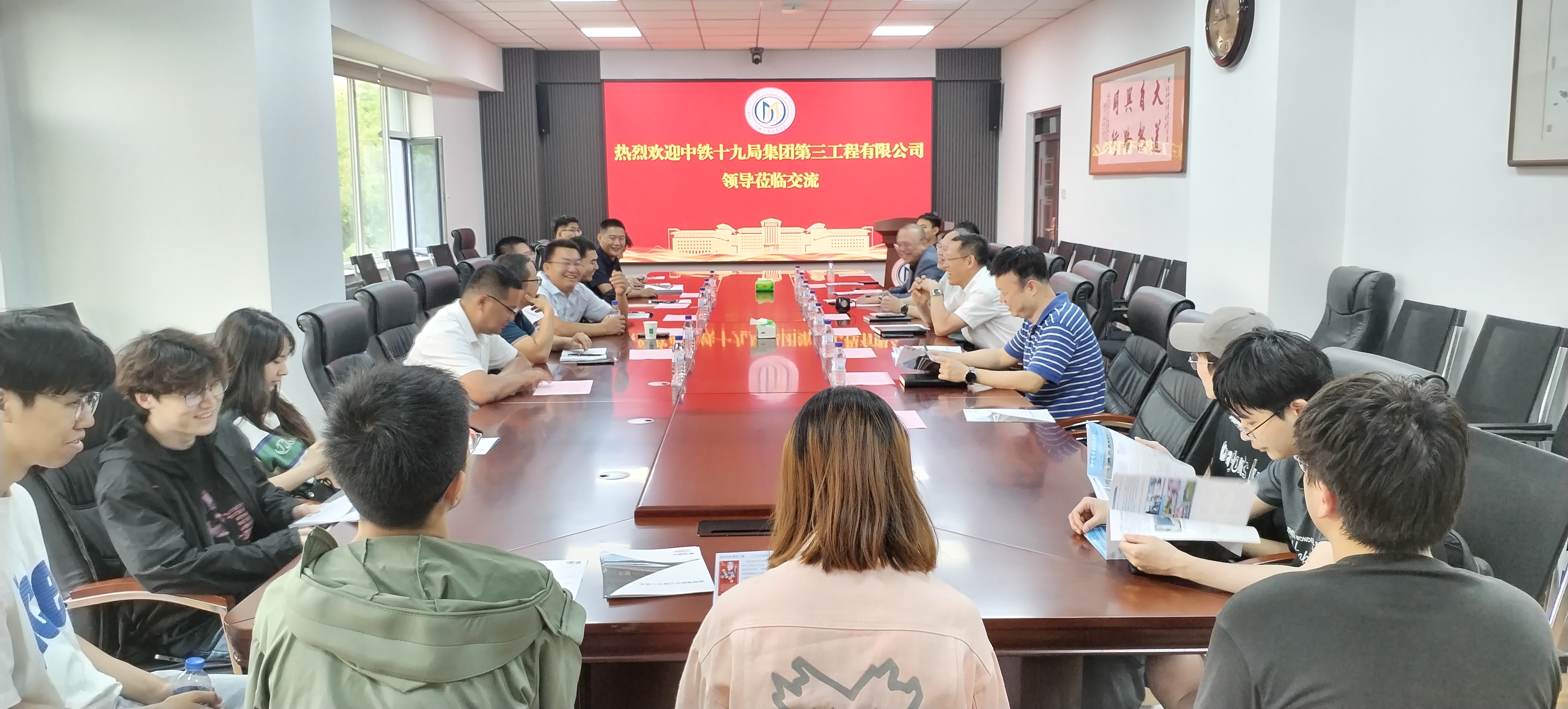 李善兴书记向中铁十九局集团第三工程有限公司董事长梅洪斌一行的来访表示诚挚欢迎。李世武院长介绍了学院沿革、学科建设、人才培养和科研成果等情况。梅洪斌董事长介绍了中铁十九局集团第三工程有限公司发展现状及未来规划,希望在开展大学生订单式培养方面有所突破,并迫切希望双方开展校企合作,进一步优化公司人才储备,推动公司持续健康发展。